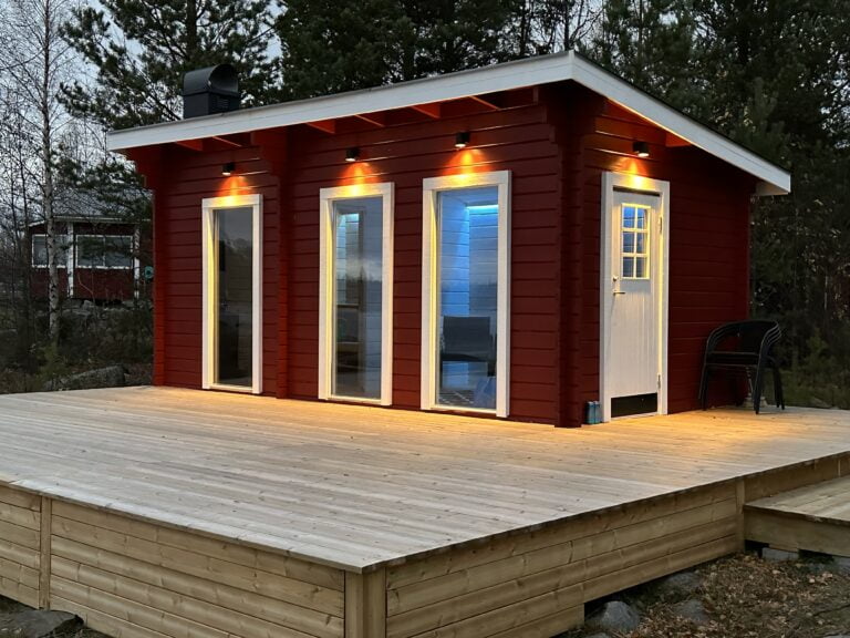 Du kan välja något av våra kompletta bastupaket eller anpassa din egen stuga. Om du anpassar din stuga får du välja dina egna tillval. Alla produkter levereras som byggsatser.