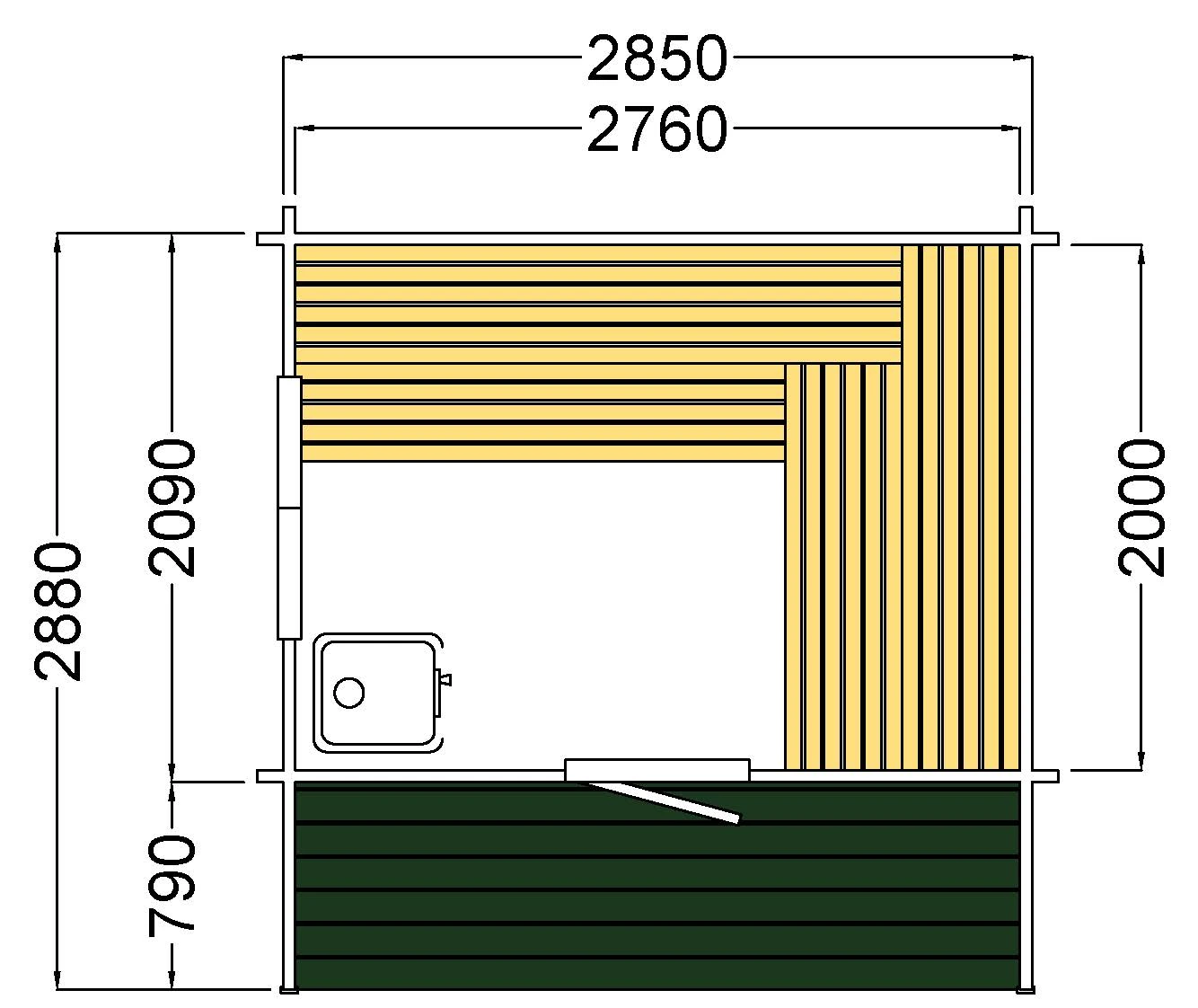 Utv. mått: 2850 × 2090