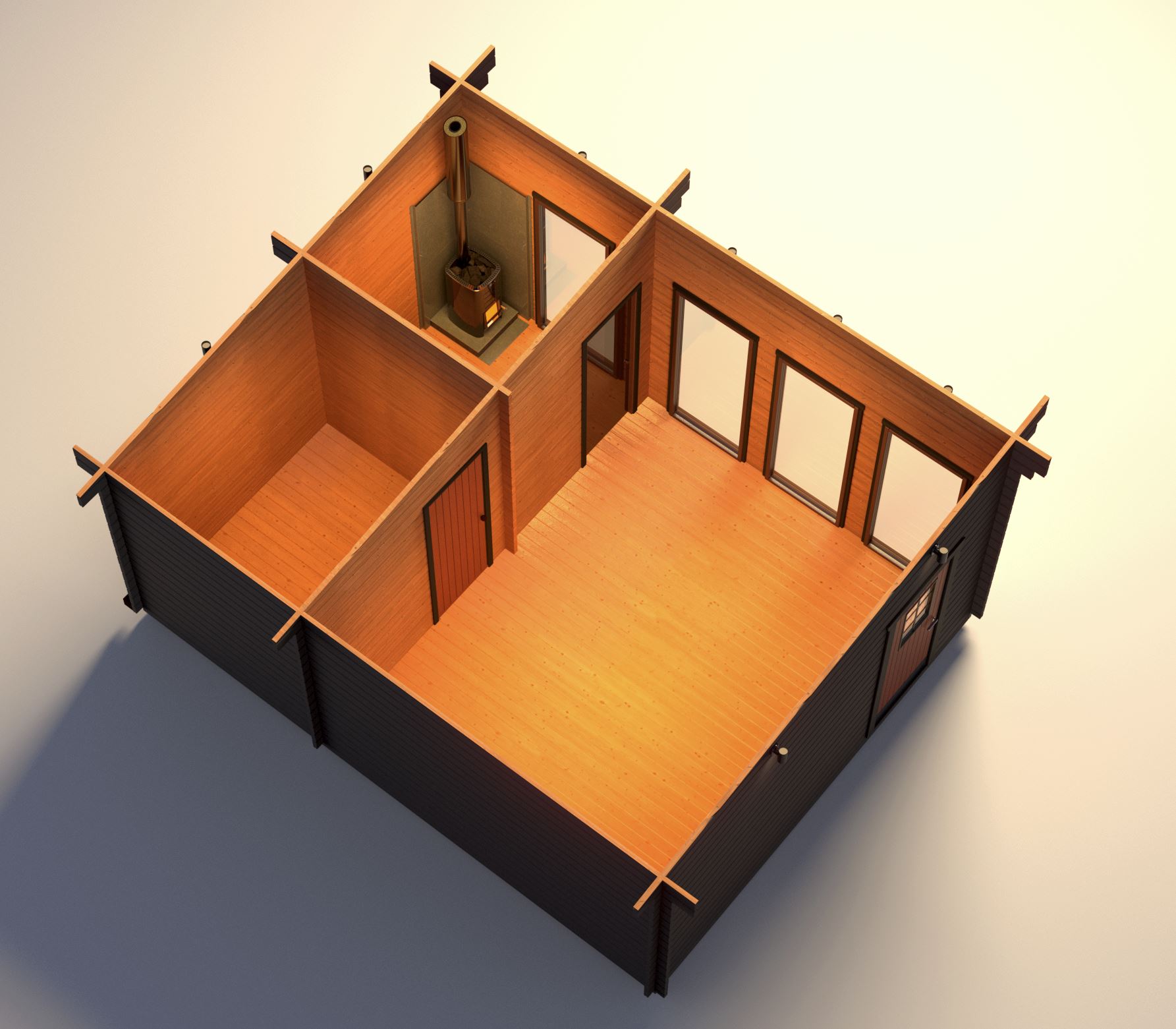 Våra stugor går alltid att spegelvända vid montering. Hål för dörrar & fönster görs av oss så placering blir enl.…