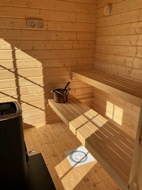 Golvet i både omklädningsrummet och bastudelen måste lackas med golvlacken för att täppa till träets porer som sedan skyddar mot vatten och smuts. Bastulavarna måste också behandlas med bastulavsoljan för att skydda mot vatten och bakterier från kropp. Rekommenderas!
